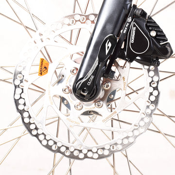 The front and rear 160 mm hydraulic Doule disc rotors give sufficient braking force even in the roughest of conditions.The combination of hydraulic is more sensitive than traditional machinery and easier to maintain than hydraulic Brakes.