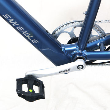 This battery is designed to be easily removed from the bike frame, allowing for convenient charging and storage. The battery has a sleek and embedded design, making it easy to carry with you on the go. It is also incredibly powerful, with a long-lasting charge that can provide up to 50 miles of riding distance. All ebikes batteries have undergone strict safety testing before packaging to ensure the safety of charging and using. Each bike frame is drawn creatively by SANEGLE's team of designers and its step through design makes it easy to use for riders of all levels.