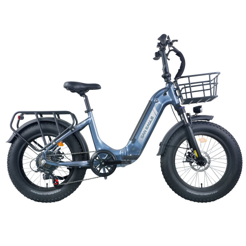 This battery is designed to be easily removed from the bike frame, allowing for convenient charging and storage. The battery has a sleek and embedded design, making it easy to carry with you on the go. It is also incredibly powerful, with a long-lasting charge that can provide up to 50 miles of riding distance. All ebikes batteries have undergone strict safety testing before packaging to ensure the safety of charging and using. Each bike frame is drawn creatively by SANEAGLE's team of designers and its step through design makes it easy to use for riders of all levels.