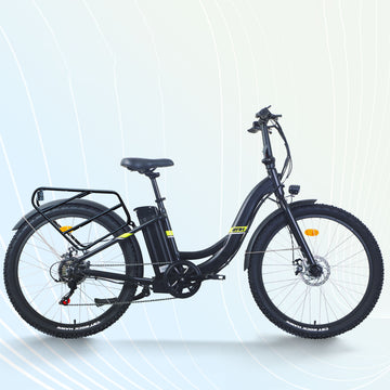 This battery is designed to be easily removed from the bike frame, allowing for convenient charging and storage. The battery has a sleek and embedded design, making it easy to carry with you on the go. It is also incredibly powerful, with a long-lasting charge that can provide up to 50 miles of riding distance. All ebikes batteries have undergone strict safety testing before packaging to ensure the safety of charging and using. Each bike frame is drawn creatively by SANEAGLE's team of designers and its step through design makes it easy to use for riders of all levels.